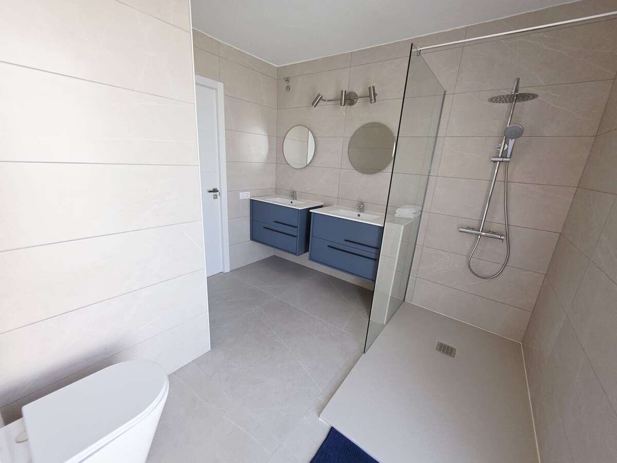 La planta alta consta de dos amplios dormitorios, uno de los cuales tiene vestidor, baño muy amplio, patio y cuarto trastero.