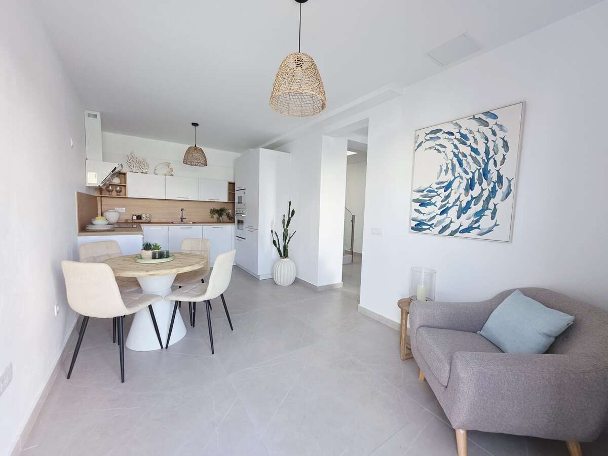 La planta baja consta de cocina independiente con comedor, salón,baño, garaje, almacén y habitación