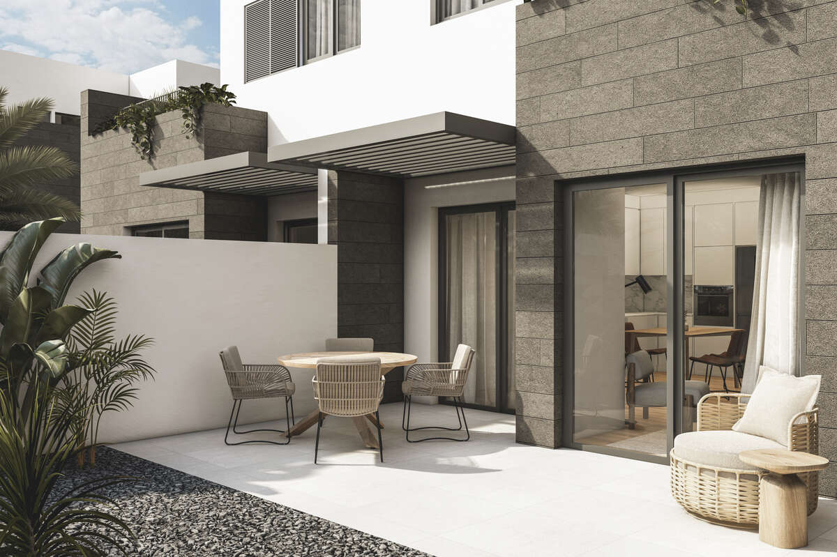 Desde el momento de la llegada, el complejo causa una gran impresión. Cada vivienda cuenta con aparcamiento privado en la entrada, un jardín trasero y una luminosa terraza central que constituye el punto de encuentro perfecto para disfrutar del aire libre. Las terrazas privadas adicionales orientación sur en la planta superior ofrecen un remanso de paz, ideal para relajarse con un café por la mañana o disfrutar de una copa al atardecer con tranquilidad.