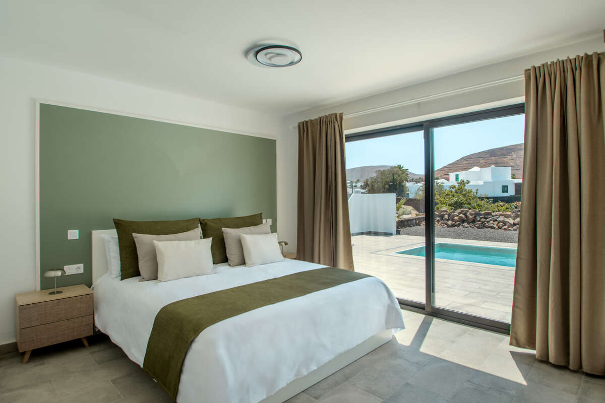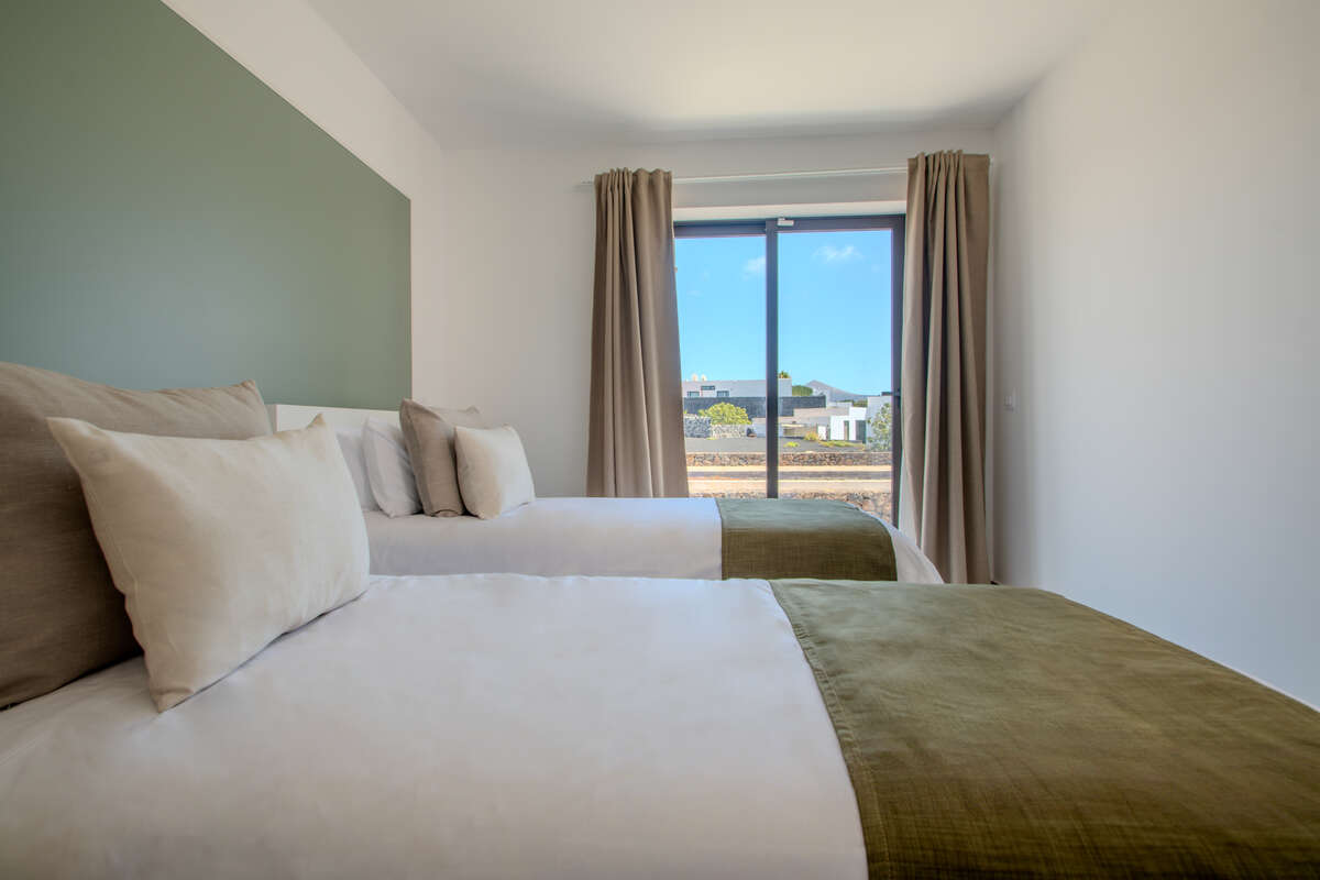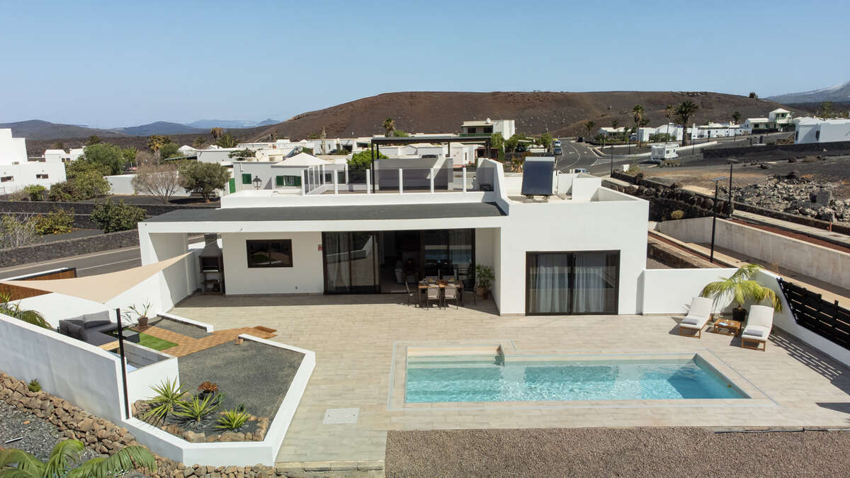 Designed across a single level for effortless flow, the main residence is a masterclass in comfort and brightness. The layout features spacious, inviting living areas, including a sun-drenched open-plan lounge and dining room, a standalone kitchen, and two well-appointed bedrooms accompanied by two full bathrooms. Life here transitions seamlessly from indoors to out; a series of porches, courtyards, and covered terraces invite you to enjoy the Canary Islands' eternal spring all year round. The crown jewel is the private solarium—a privileged vantage point offering breathtaking, panoramic views of the Timanfaya volcanoes, Montaña de la Cinta, and the deep blue of the Atlantic.