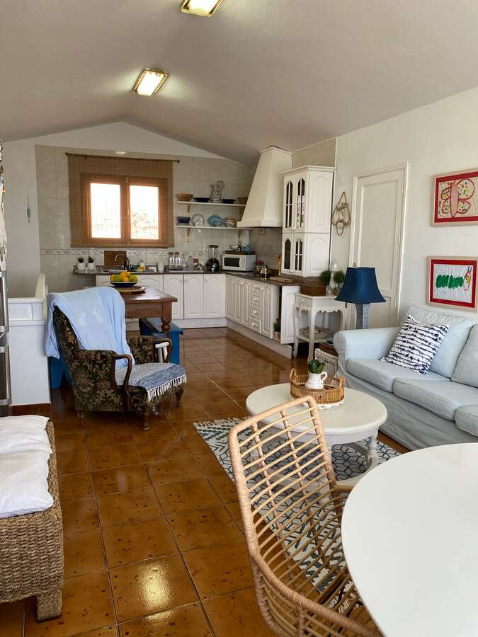 La casa consta con un apto anexo que consta de habitación ,cuarto de baño completo , cocina y salón con vistas directas al mar