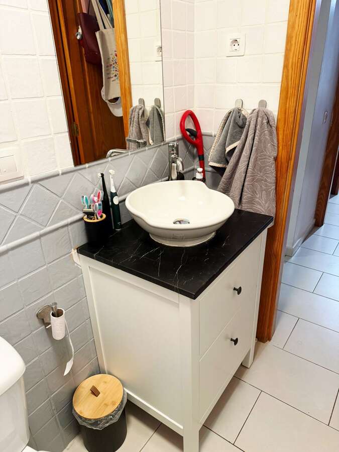 It is a small building of 83 m², built in 2011 and totally reformed, with a modern and very bright design. It has three large dormitories, two bathrooms, a spacious lounge and a separate kitchen with island. Also, there is air conditioning, a small patio sink and a kitchenette. It includes a private, enclosed garage area of 12 m² and a 6.6 m² hall. The building, of only two old people, has a very small community, with gas prices of only 22 euros per month.